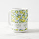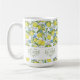 Här är en underbar mugg som serverar lite hett te till gästerna! En färglös citron mönster med ord "Var vår gäst" över hela grund.