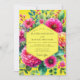 Celebrate your union with a design that bursts with joyful, summery energy. A radiant lemon-yellow backdrop provides a stunning canvas for lush, painterly botanicals. Vibrant dahlias and zinnias in shades of fuchsia and magenta are nestled amongst verdant foliage, creating a feeling of opulent abundance perfect for a cheerful affair.