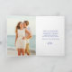 Ett vackert tackkort med en blå mosaik kant och en tunn guldram i mitten. Citroner, vita blommor och salvia gröna blad är sammanflätade för att skapa en modern botanisk känsla. Tack är skrivet i en vacker modern kalligrafi. Ditt namn står nedan i en elegant text. Ditt foto är till vänster och ett förtryckt tackmeddelande är till höger.