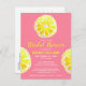 Inbjudningskort för möhippan har halvfärgsfärgade färgade citroner och rosa bakgrund.