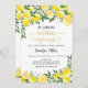 Den här vackra inbjudan innehåller färgstarka vattenfärgliga citroner och grönt med faux guld-foliebokstäver.