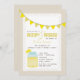 En smutt och ser inbjudan att presentera gul bunting på bästa och en illustration av en masonburk av lemonade på lämnad grund. Bekläda inspirerade designen för särdrag den snöre. Personifiera texten med din information.