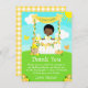 Denna söta och fantasifulla tack-kort visar en svart son med mörk hy vid ett gul citronlemonadstånd som är dekorerat med blommor och flaggor. I bakgrunden syns en blå himmel, solsken och fjärilar. Texten kombinerar dekorativa och sans-serif-teckensnitt för en stilren och modern look. Detta är perfekt för en sommarfödelsedagsfest.