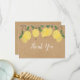 Ett snyggt tackkort med citroner och vit script tack typografi på en rustik kraft boho bakgrund. Du kan anpassa med ditt eget tackmeddelande på baksidan, ett perfekt sätt att säga tack! Designad av Thisisnotme©