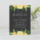 Inbjudan-gäster till ditt evenemang med den här möhippan på en luncheon-inbjudan till den här orustiska citrustemat. Den har vattenfärgade illustrationer av citroner, klementiner, blommar för blommigt och gröngarland med faux chalkboard-bakgrund. Denna citrusinbjudan kommer att vara perfekt för citrustemat och sommartid. Anpassa genom att lägga till din händelseinformation.