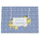 Den här bruden eller maid of honor-tacket du presentsäcken har vattenfärgscitroner mot en vintage blå och vit mönster. Texten är i blek blå och koboltblå och allt kan vara personlig. Du kan också lägga till eller ta bort textrutor i verktyg i designen.