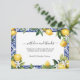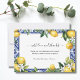 Beautiful lemons and blue and white tile Mediterranean design with white florals and greenery on these wedding ( or any event ) thank you cards. All three sections of text are editable.