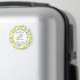 En tack-magnet för en bröllopste eller annan tillställning. Designad med grenar av gula citroner och gröna blad i ett upprepande mönster. I mitten finns en cirkel med ett rep