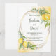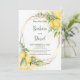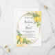 Lemons Eucalyptus Gula blommor sparar datumkortet. Den romantiska stil med vattenfärgade citroner, gula blommor och eukalyptus är perfekt för en rustiksommar bröllop. Den geometriska faux-guld-folie ram tillför en modern beröring. Vattenfärgstänk kompletterar sammansättningen och ge är en speciell charm.