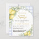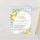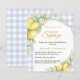 Celebrate your upcoming bundle of joy with this elegant lemon-themed bridal shower invitation. Featuring a dusty blue and white gingham background, delicate watercolor lemons, fresh greenery and a pink bow, this design creates a warm and inviting atmosphere perfect for a summer or citrus-inspired bridal shower.