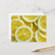 Det här vykortet innehåller ett foto av en närbild av citroner.