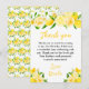 Detta vackra och eleganta tackkort har akvarell citruslemoner och grönska. Texten kombinerar handskriven skrift och seriffer för en stilren och modern look. Detta är perfekt för en rustic födelsedag under våren eller sommaren.