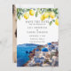 This elegant wedding save the date invitation featuring watercolor lemons and Santorini Greece scene can be personalized with your information in chic typography and all your special photo on the reverse. Designed by Thisisnotme©