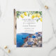 Denna eleganta bröllopsinbjudan med akvarellcitroner och en vy över Santorini Grekland kan anpassas med din information i chic typografi och ditt speciella foto på baksidan. Designad av Thisisnotme©