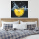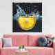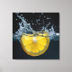 Ett pulserande citronsegment fångas mitt i stänk i vatten och skapar dynamiska räfflor och bubblor mot mörkens bakgrund