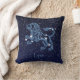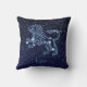 Dekorativ kudde med zodiaksymbolen för Leo i mjukt blått silver, övertäckt med stjärnorna i konstellationen, mot en himlar-stjärnbakgrund som är graderad från djup midnattsblå till svart.