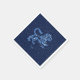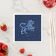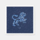 Napkins med symbolen för Leo i mjuk silver-blått, övertäckt med stjärnorna från konstellationen, mot en stjärnbakgrund från himmel i djup midnattblått