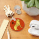 Coola, röd nyckelkedja med en stolt, gyllene Lejon (Leo zodiac-tecken) inspirerad av gammal konst och en liten, svart astrologisk symbol för Leo. Den här produkten är helt anpassade.