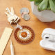 Anpassa denna astrologitematiska nyckelkedja för någon som är född mellan den 23 juli och den 22 augusti! Deras födelsetecken är Leo eller The Lejon, Zodiacs femte astrologiska tecken, styrt av Sol, deras lyckliga färg är Orange och deras skylt metall är Guld. Den här orangen har en skiva med guldfärgat gräns och Lejona tecken i mitten omgiven av de tolv symbolerna på Horoscope-ratten.