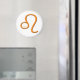 Design innehåller Leo zodiac-tecknet i orange med "leo" skrivet i slingan.