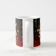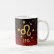 Anpassningsbar mugg för "Leo" med gyllene djurparkssymbol, guld-stjärnor och röd och svart övertoningsbakgrund.