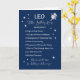 Större än liv, strålande och helt oförglömlig - precis som en Leo! Det här lysande födelsedagskortet har en marin blå bakgrund, Leo zodiaksymbol, och ett djärvt "recept" packat med deras självförtroende, charm och en extra som serverar energi "Titta på mig!". Det här kortet lyser precis som de gör. En roligt, ett lekfullt sätt att fira Leo i ditt liv och påminna dem om att i dag är deras dag att bli föreläsningens stjärna!