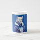 Una imagen IA de un león alvino elegante con una cazadora azul