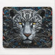 Ett slående och mycket designat mittstycke i leopardens huvud, som karakteriseras av sina utmärkande fläckar och levande bruna ögon. Omgivande leoparden är lush, intertwining blommigt inslag som innehåller pulserande röda blommor, vilket ger en stark kontrast till den övervägande bakgrunden till mörken. Den övergripande sammansättningen förenar en känsla av elegans och skönhet i vilden och blandar djurets våldsamma uttryck med de känsliga motiven för blommigten. Det detaljerade strukturen av både leoparden och det omgivande lövet skapar en rik som är visuellt engagerande för biet som fångar en harmonisk blandning av natur och konst.