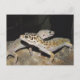 Betala uppmärksamhet på vackra mönster på en leopard gecko. Lejdödla (Eublepharis macularius) i Förenade Stater är en av de vanligaste lizards i dag. För hemmet är det den bästa ödlan. Den ödlan kan vokalisera och tvätta ett öga med tunga. Leopard geckos är långlivade lizards. I genomsnitt lever de sex till tio år, men många män lever 10 till 20 år. Leopard geckos är lätta husdjur, de är lätta att föda och matar. Dessutom har de olika färg-morfer. Leopard gecko som husdjur är den bästa ödlan! Och alla gecko älskare kan ha det här roligten vykort!