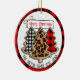 Personlig med namn och fastställt datum Black and white Buffalo plaid, red and black gingham, leopard print print Julgranar ornament.