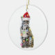 Leopard med hög jultomte julgransprydnad keramik