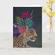 Hett House Leopard 1 av Fab Funky. En leopard vilar med tropiska blommor och grönt på huvudet som ett huvudstycke. | 192441GG