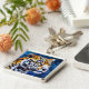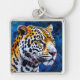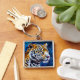 Leopard på blå bakgrund fyrkantig silverfärgad nyckelring