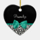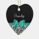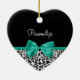 Leopard Print Emerald Grönt Ribbon Bow Chic Namn Julgransprydnad Keramik