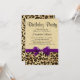 Leopard Print med skarp vind lila Bow Girl's Födelsedagsfest inbjudan är underbart för den kvinnliga flickflickan med fläkt för mode och modern stil. Shades of guld and black leopard eller cheetah vild animal safari Tema är chic och klass, och perfekt för en flickas 12:e födelsedag eller vilket år som helst, till och med ett före-tonåring, interpolering eller tonåring.