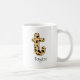 Anpassa den här anpassningsbarna leopard avger brev "t"-kaffe mugg genom att lägga till namn. Den svarta texten för det anpassade namnet finns i ett handskrivet teckensnitt.