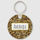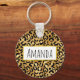 En nyckelring med en snyggt mönster. Exotiska svarta leopardfläckar på guld. Vild ännu elegant stil. En rektangel med vit färgad ram med en gräns med faux guld överst med personligen inuti.