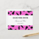 Ett roligt vilddjursmönster med svart och rosa leopardtryck. Anpassa med namn och bröllopsdatum efter önskemål.