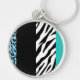 Leopard Print, Zebra tryck, Animal Print, Blue Rund Silverfärgad Nyckelring