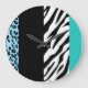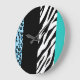 Leopard Print, Zebra tryck, Animal Print, Blue Stor Klocka