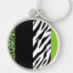Leopard Print, Zebra tryck, Animal Print, Grönt Rund Silverfärgad Nyckelring