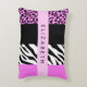 Leopard Print, Zebra tryck, Rosa, ditt namn Prydnadskudde