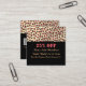 Modern elegant, svart och guld glitter gnistra med rosa leopard avger dekorativt animaliskt fläckat och baksida QR-affärskort med gigantisk salonrabatt på svart bakgrund. Du kan enkelt ändra typsnitt, typsnitt färg, storleka färg och bakgrundsinformation genom att klicka på verktyg för anpassning. Byt ut din egen QR-kod till webbplatsen på social-media.