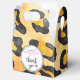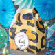 En presentpåse för en bachelorette-fest med leopard spots vilda djur i bakgrunden. En coola tittar vin glas med en tjockt svart bläck kontur och fylld med shock rosa vin. Tack för att du skrev in ett handskrivet teckensnitt i en vit trendig.