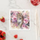 Bilden innehåller en vackert detaljerad illustration av en ung leopard omgiven av en mängd vibrerande blommor som blommar. Leoparden, med sitt särskiljande fläckade päls och uttryckliga ögon, är placerad i centrum och skapar en slående brännpunkt. Omgivande blommor, främst i skuggor av rosa och lila, tillför en mjuk, vismisk beröring till sammansättningen. Bakgrunden är stänk i guld och pastel färg, vilket förbättrar den allmänna drömmen och konstnärliga känslan av bilden. Den här fängslande blandningen av vilda djur och blommigt inslag gör bilden både visuellt tilltalande och unik, perfekt för produkter som syftar till att framkalla en känsla av elegans och naturskönhet.