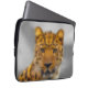 Härligt leopardansikte med ljusa orange och svart teckning och piercingögon.