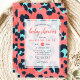 Leoparddjurtryck Rosa Marin Flick Babyfirande Inbjudningar