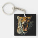 Kraftfull Leopard Roaring attackerar porträtt nära med långvariga fläktar. Originalvektorillustration isolerad på vit Copyright BluedarkArt TheChameleonArt.