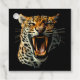 Kraftfull Leopard Roaring attackerar porträtt nära med långvariga fläktar. Originalvektorillustration isolerad på vit Copyright BluedarkArt TheChameleonArt.