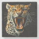 Kraftfull Leopard Roaring attackerar porträtt nära med långvariga fläktar. Originalvektorillustration isolerad på vit Copyright BluedarkArt TheChameleonArt.
